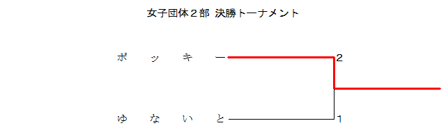 | 女子団体2部 Bブロック | Bad2000 | ゆないと | チームおかつ | 順位 |